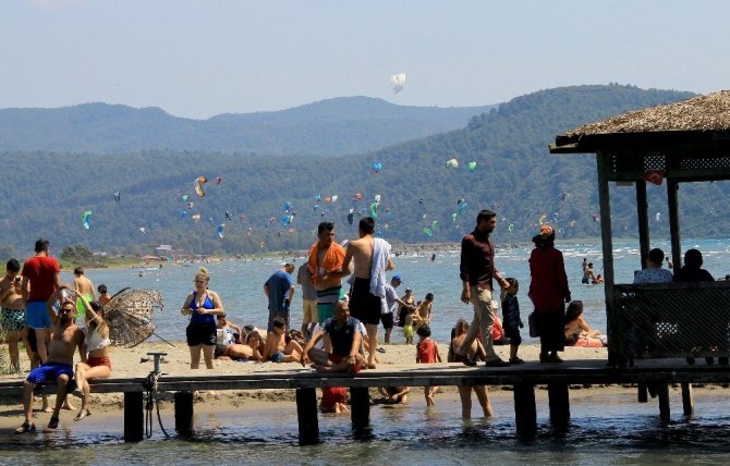 Akyaka’da alternatif turizm olarak Kitesorf sporunu yapanlar ise Akçapınar sahilinin semalarını renkli paraşütlerle süsledi. Yüzlerce Kitesorf tutkunu sığ sahili ve rüzgârı nedeniyle gün boyu su üzerinde kalabiliyor.