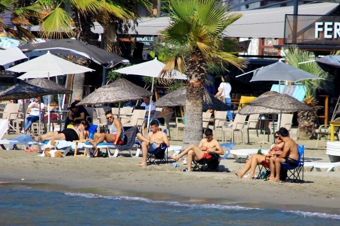 Ekim ayının son günlerinde mevsim normallerinin üzerinde seyreden hava sıcaklığı vatandaşları yılın son deniz keyfi için Akyaka sahiline çekti.