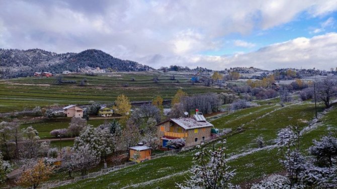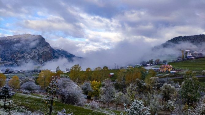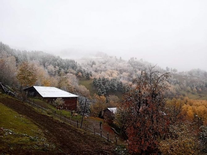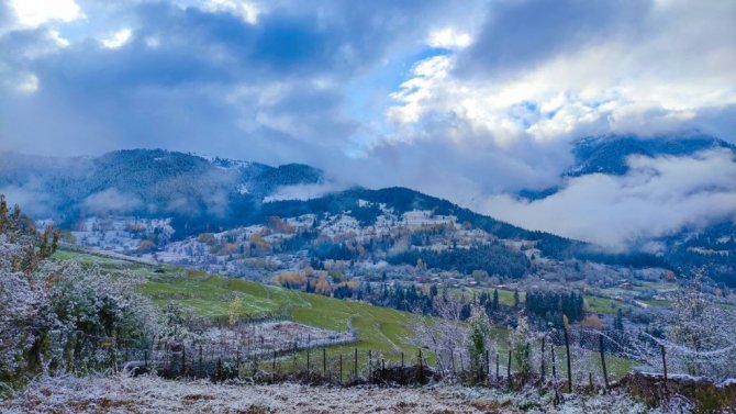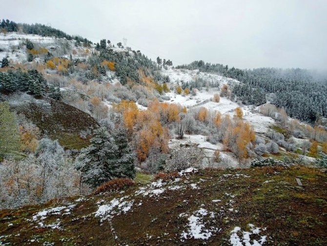 Sonbahar renklerinin yer aldığı yeşilin yanı sıra sarı, turuncu ve kırmızının tonlarının üzerine yağan kar, kartpostallık görüntülerin ortaya çıkmasını sağladı. Erken kış fotoğrafları ise görenleri kendine hayran bıraktırdı.