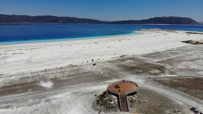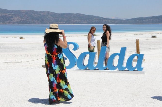 Burdur'un Yeşilova ilçesinde, beyaz kumsalı ve turkuaz rengi suyunun güzelliğiyle ünlenen Salda Gölü'nde ziyaretçiler yoğunluk oluşturdu. Mavi ve yeşilin iç içe olduğu doğal güzelliğiyle de dikkat çeken Salda Gölü, yerli ve yabancı turistlerin ilgi odağı haline geldi. Kurban Bayramı dolayısıyla tatil beldelerine giden ziyaretçiler, Salda Gölü'ne uğrayarak zaman geçirdi. Ziyaretçiler, Göl manzaralı beyaz kumsalıyla birlikte Salda yazısının bulunduğu bölge ile Salda Gölü'nü koruma ve düzenleme çalışmaları kapsamında yenilenen seyir terasında fotoğraf çekilerek anı ölümsüzleştirdi.