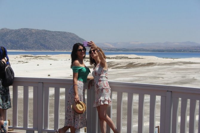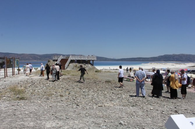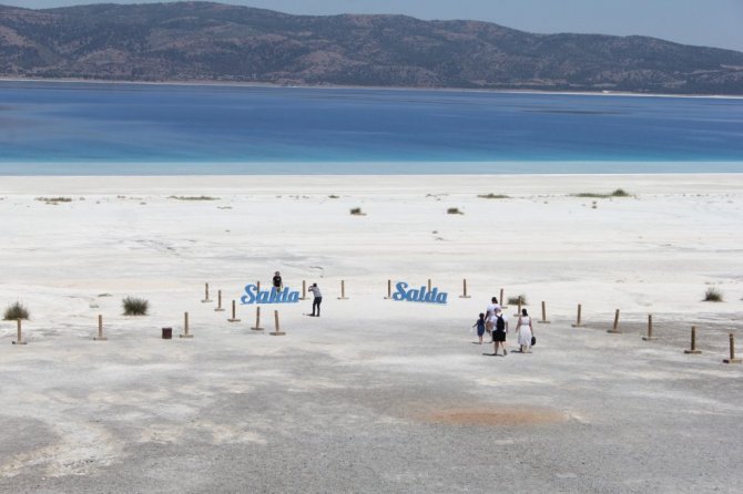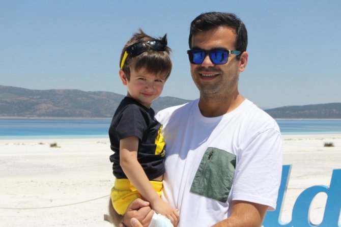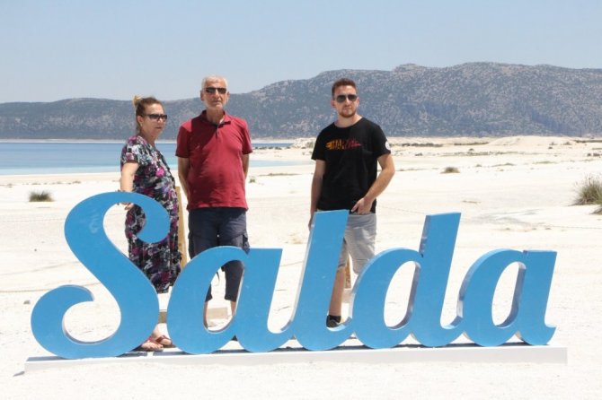 Ziyaretçilerine beyaz kumsalı ve turkuaz rengi suyuyla görsel bir şölen sunan Salda Gölü'ne Konya'dan fotoğraf çektirmek için gelen Hasan Tabur, "Oğlum ve eşimle birlikte geldik. İnsanlar bencilce düşünerek dibine kadar giremediği için güzel bulmayabilirler ama gelecek nesillere aktarılması için kesinlikle güzel. İlla ki dibine kadar girmemize gerek yok" diye konuştu.