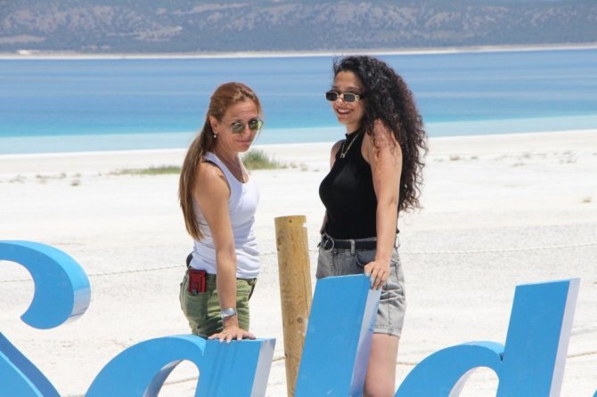 Burdur'un Yeşilova ilçesinde "Türkiye'nin Maldivleri" olarak anılan Salda Gölü, bayram tatilinde de yerli ve yabancıların gözdesi oldu. Ziyaretçiler hem yüzdüler hem de bol bol fotoğraf çekildiler.
