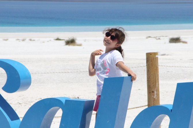 Salda Gölü'nün Adana'dan gelen minik ziyaretçisi 9 yaşındaki Nehir, "Salda Gölü çok güzel. Bayıldım. Fotoğraf çektirdim. Çok beğendim. Çok güzelmiş Salda Gölü" dedi.