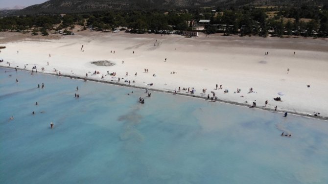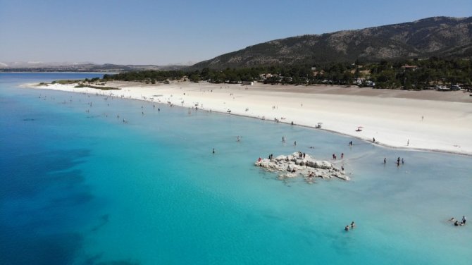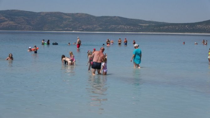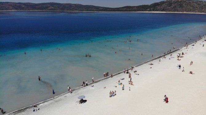 Burdur'un Yeşilova ilçesindeki turkuaz rengi suyu ve beyaz kumsalıyla görenlerin hayran kaldığı Salda Gölü'nde ziyaretçi yoğunluğu yaşanıyor. Türkiye'nin çeşitli bölgelerinden ve özellikle turlar aracılığı ile Rusya'dan gelen ziyaretçilerini ağırlayan Salda Gölü'nün Beyaz Adalar kısmında yasak olduğu için göle giremeyen vatandaşlar Tabiat Parkı kısmında göle girerek serinleme fırsatı buluyor. NASA'nın Mars'taki Jezero Krateri ile benzer mineral oluşumuna ve jeolojik yapıya sahip olduğunu açıklaması ile Dünya'da gündem haline gelen Salda Gölü'nde yerli ve yabancı turistler doğal güzelliği yakından görme fırsatı buluyor. Göl kıyısında gezip, bol bol fotoğraf çektiren, ve gölün keyfiyi yaşayan yerli ve yabancı turistler, Kurban Bayramı tatilinde Salda Gölü'nü tercih ederek tatilin tadını çıkardı.