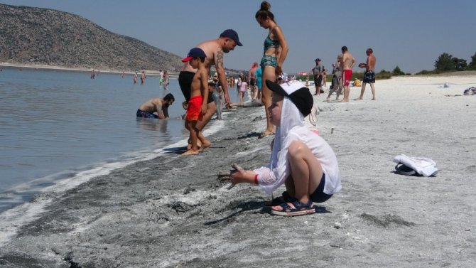 Afyonkarahisar'dan gelen Turukhan Topçuoğlu da ilk kez geldiğini ifade ederek Salda Gölü'nü çok güzel bulduğunu dile getirerek, "Gayet güzel bulduk. Bayram için daha kalabalık diyorlardı ama güzel bulduk" diye konuştu.