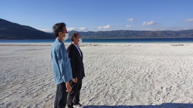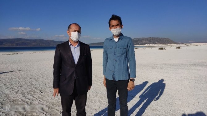 Burdur Valisi Ali Arslantaş ve Tabiat Varlıklarını Koruma Genel Müdürü Mehmet Ali Kahraman Salda Gölü'nde incelemede bulundu.