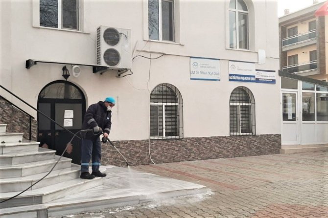 Sağlık kuruluşları başta olmak üzere, vatandaşların yoğun olarak kullandığı kamusal alanlar, parklar, camiler, otobüs durakları, resmi kurumlar ve salgın döneminde hizmet vermeye devam eden işyerleri ve dükkanlar düzenli olarak dezenfekte ediliyor.