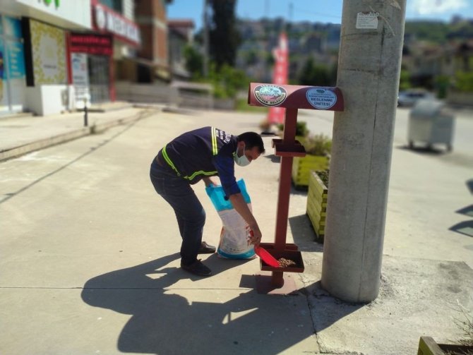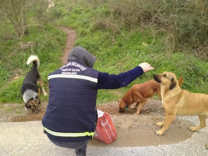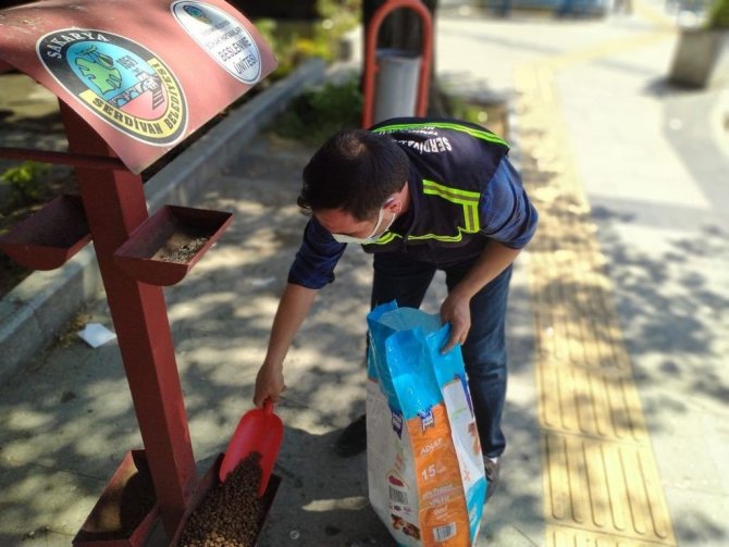 Serdivan'da, sokağa çıkma kısıtlaması nedeniyle yiyecek ve su bulmakta zorlanan sokak hayvanlarının ihtiyaçları belediye ekipleri tarafından gideriliyor.