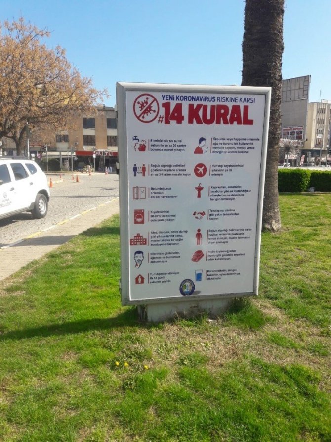 Özellikle kamusal alanlar ile toplumsal kullanım alanlarında insan sağlığını tehdit eden virüs ve bakterilere karşı ilçe genelinde ilaçlama yaparak yeni tip korona virüse karşı etkin önlemler almayı sürdüren Salihli Belediyesi, şehir merkezinde bulunan raket, durak, LED ekran ve billboardlarda virüsten korunmak için alınabilecek önlem ve tedbirler hakkında hazırlanan görsellerle vatandaşları bilgilendiriyor. Salihli Belediyesi Basın Yayın ve Halkla İlişkiler Müdürlüğü tarafından hazırlanan bilgilendirme video ve tasarımları da, şehrin birçok noktasına vatandaşların görebileceği şekilde LED ekran, raket, durak ve billboardlara asıldı.