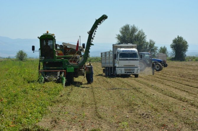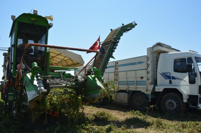 Salihli Ovası’nda makineli domates hasadı
