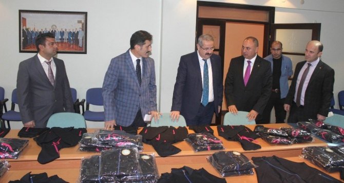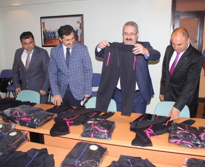 Ticaret Borsası hizmet binasında düzenlenen eşofman teslim törenine Kaymakam Mehmet Kamil Sağlam, Borsa Başkanı Yetiş Aksoy, İlçe Milli Eğitim Müdürü İsa Dilek, Borsa yönetim kurulu üyesi Armağan Karaman ile borsa genel sekreteri Turan Yalçın katıldı.