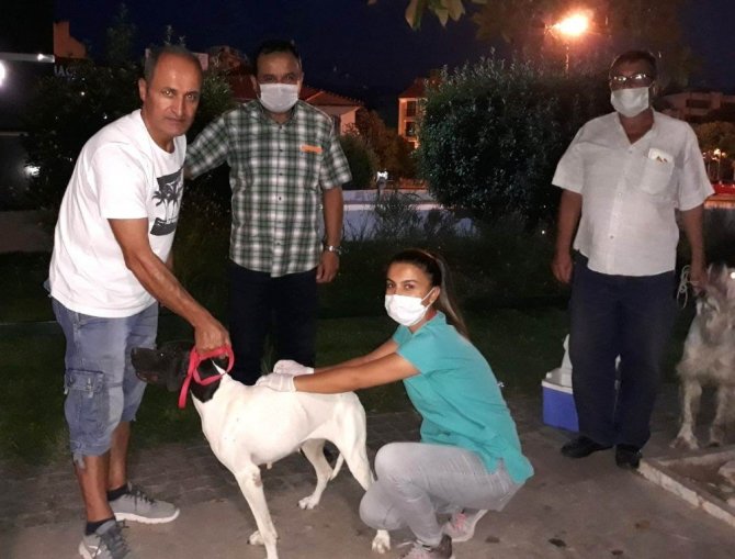 Manisa’nın Salihli ilçesindeki Avcılar Kulübü Derneği öncülüğünde, av köpekleri kuduza karşı aşılandı.