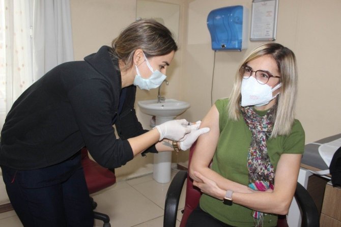 Çin'den gelen Covid-19 aşısı tüm Türkiye genelinde öncelikli olarak sağlık çalışanlarına uygulanmaya başlanırken, Manisa'nın Salihli ilçesinde ilk aşı Devlet Hastanesi Başhekim Yardımcısı Gülcan Çetinkol'a yapıldı.