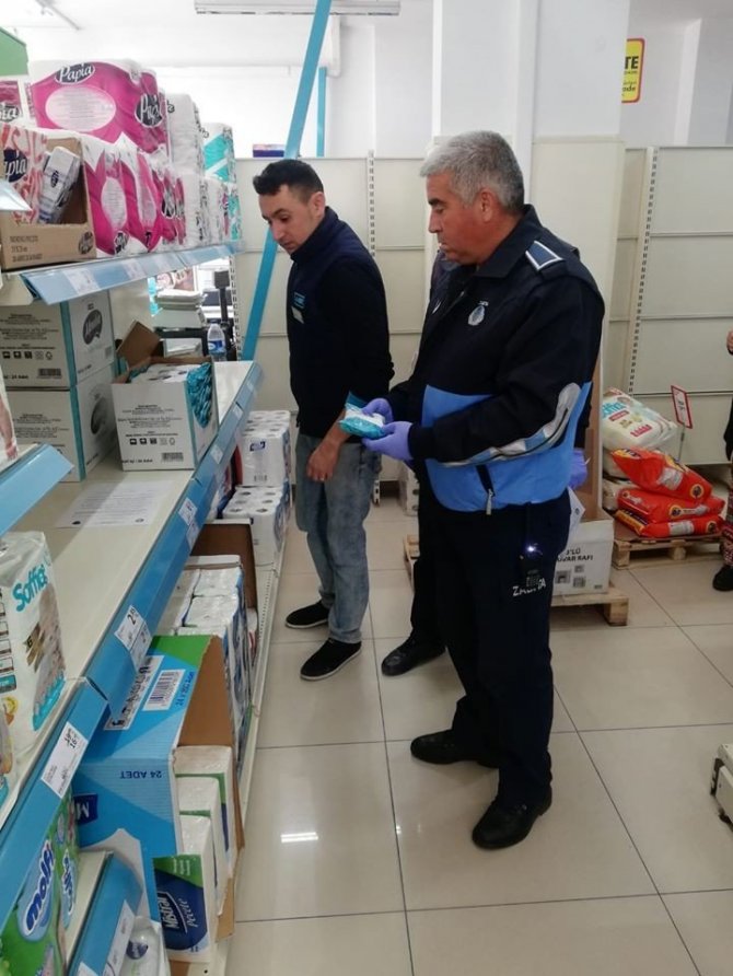 Zabıta ekipleri tarafından yürütülen çalışma kapsamında, özellikle son dönemde yoğun talep gören; kolonya, sabun, dezenfektan, ıslak mendil, bakliyat ve makarna gibi temizlik ve gıda ürünlerinin fiyat kontrolü yapıldı.