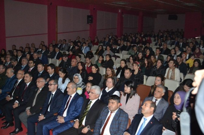 Saygı duruşunda bulunulması ve İstiklal Marşı’nın okunmasının ardından günün anlam ve önemini belirten konuşmayı İlçe Milli Eğitim Müdürü İsa Dilek yaptı. “Gelişimin ve ilerlemenin önündeki en büyük engel cehalettir” diyen Dilek “Sizler, milli davamızın yılmaz, yorulmaz, usanmaz davacılarısınız. Sizler, cahilin değil, cehaletin düşmanı, ilim ve irfan ordusunun rütbesi, eğitimin temel taşı, çocukların can yoldaşı, bilimin sunucusu, mukaddes adına tüm değerlerin koruyucusu, peygamber mesleğinin icracılarısınız. Eğitim sistemimizin asli unsuru sizlersiniz. Sorumluluğu büyük ve başka hiçbir meslekle kıyaslanmayacak kadar kutsal bir mesleğe sahipsiniz. Sizler bir medeniyeti, bir kültürü inşa eden nesiller yetiştirmektesiniz. Öğretmen bir eğitimci, bir rehber bir mimar bir sanatkardır. Rehberliğinizle sadece öğrencilerimize değil bu ülkenin geleceğine de şekil veriyorsunuz” dedi.