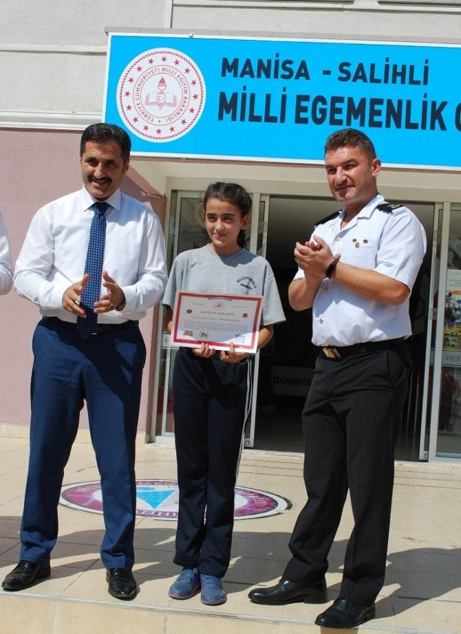Trafikte seyir halinde bulunan sürücülerin trafik kurallarına uymaları, trafik işareti ve işaretçilerine riayet etmeleri konusunda farkındalık oluşturması, çocukların ise trafik bilinci ve kültürünün yerleştirilmesi amacıyla İçişleri Bakanlığı tarafından hayata geçirilen "Dikkat sizden, notlar bizden" projesi kapsamında Jandarma Genel Komutanlığı tarafından İnternet üzerinden düzenlenen yarışmada "Sürücü seyahat karnesini" doldurarak sosyal medya üzerinden katılan ve en çok beğeni alarak ilk 100’e giren Salihli Milli Egemenlik Ortaokulu öğrencisi Fatma Beyza Ateş, hem katılım belgesi, hem de bisiklet ile ödüllendirildi.