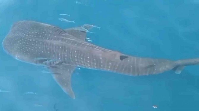 Hataylı balıkçılar Samandağ ilçesi Meydan Mahallesi açıklarında balık tutarken deniz yüzeyinde bir balina köpek balığının yüzgecini fark etti. Balıkçılar cep telefonuyla köpek balığını görüntülemeye başladı. Bir süre balıkçı teknesinin çevresinde yüzen balina köpek balığı daha sonra gözden kayboldu. Balıkçılar, bölgede ilk defa böyle bir tür köpek balığı ile karşılaştıklarını belirttiler.