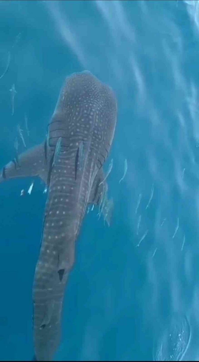 Hatay'ın Samandağ ilçesi açıklarında görülen balina köpek balığı heyecana yol açtı.