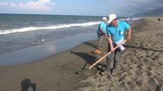 Samandağ Sahilinde petrol temizliği