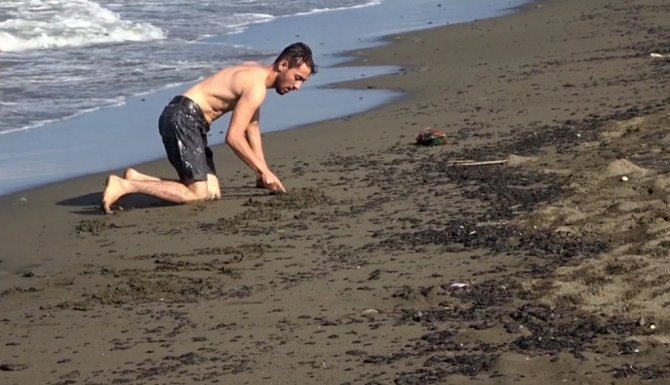 Bu arada denize giren vatandaşların ayaklarına petrol atığı bulaştı.
