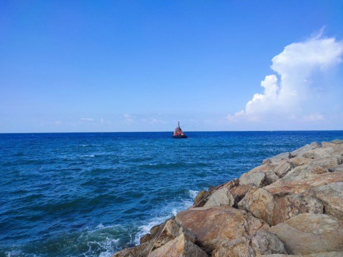 Seyit Onbaşı Gemisi'nin Samandağ açıklarında çalışmalarına devam ettiği, Hatay Büyükşehir Belediyesi Çevre Koruma ve Kontrol Dairesi Başkanlığı ekiplerinin de kıyıda çalışmalarını sürdürdüğü görüldü.