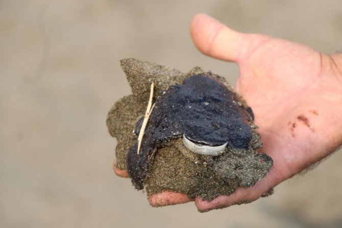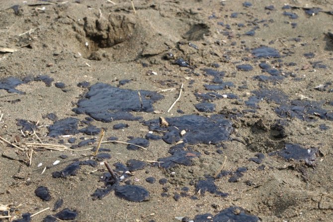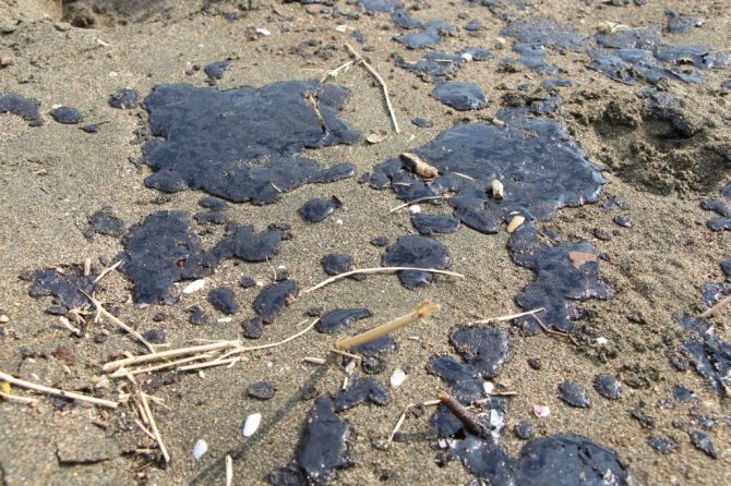 Samandağ sahiline vuran petrol atıkları canlıları tehdit ediyor