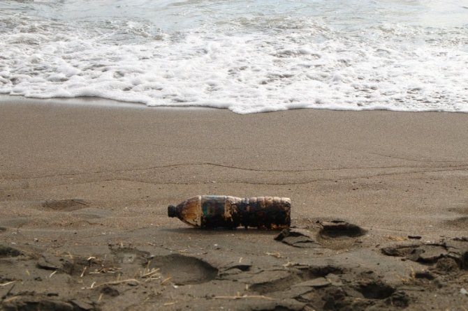 Hatay'ın Samandağ ilçesinde bulunan sahile vuran petrol olduğu tahmin edilen atık, su canlılarını ve kaplumbağaları tehdit ediyor. Vatandaşlar ise sahilin kıyı şeridinde bulunan atıklara aldırış etmeden denize giriyorlar.