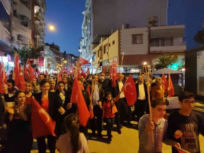 Hatay'ın Samandağ ilçesinde 29 Ekim Cumhuriyet Bayramı kutlamaları kapsamında fener alayı düzenledi.