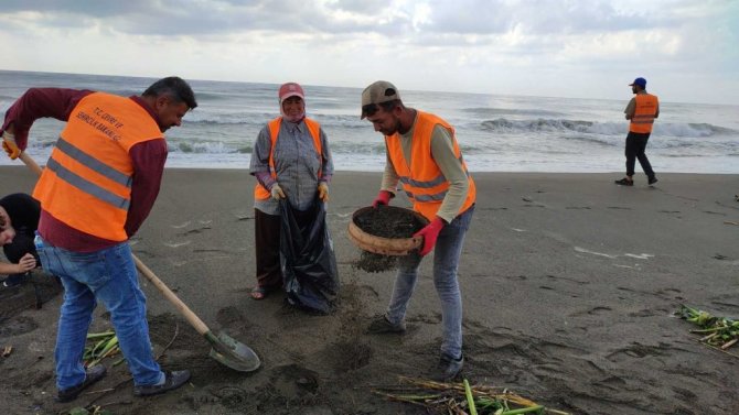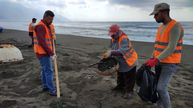 Suriye kaynaklı petrol sızıntısının neden olduğu kirliliğe yönelik başlatılan temizlik çalışmaları devam ediyor.