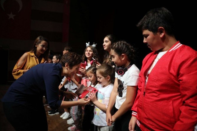 Tiyatroseverlerden tam not alan “Şampiyon” adlı tiyatro oyunu sonrası çocuklara, Menteşe Belediyesi tarafından Nutuk hediye edildi.