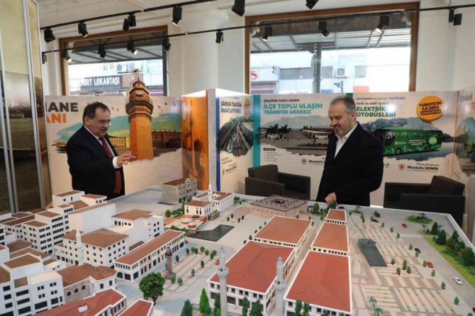İki başkan yapımı devam eden projelerle ilgili inceleme yaptı. Başkan Demir tanıtım merkezinde projelerini anlattı.