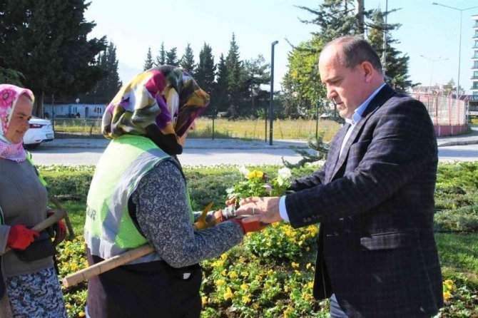 Çiçek dikiminde özellikle kadın personelin çalıştırıldığını da belirten Park ve Bahçeler Dairesi Başkanı Ekrem Şahin, "15 kadın personelimiz tüm yeşil alanlarda çiçek dikimini yapıyor. Özellikle onlarla çalışıyoruz. Çünkü kadın personellerimiz daha hassas. Tıpkı evlerinde bir oya işler gibi çiçekleri toprakla buluşturuyor. Desen desen çizerek dikiyorlar. Kadın personelimiz ile yapılan bu çalışmalar daha verimli oluyor. Ayrıca diktikleri çiçeklere sahip çıkıyorlar. Park ve bahçelerimiz kadınlarımız elinde güzelleşiyor" diye konuştu.