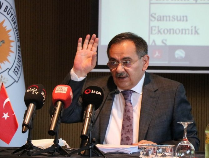 "SASKİ ve Fen İşleri Dairesi Başkanlığı sahada yoğun bir çalışma sürdürüyor. 150 km civarında geçen yıl beton yol yapmıştık. 150 bin metre küpün üzerinde beton aldık. Bu sene ihale yaptık fiyatlar yüksek geldi. İhaleyi iptal ettik ve 4 tane beton santrali kuruyoruz. Çarşamba, Samsun merkez, Kavak ve Bafra bölgesine yapacağız. Artık kendi betonumuzu kendimiz üreteceğiz. 15 tane de yeni mikser kuracağız. Santral altından pompaya ihtiyaç olmadan C30 betonlarımızı oradan üreteceğiz. Maliyet noktasında ihale ile satın almanın 3'te 1 fiyatına bize mal olacağı müjdesini veriyorum. Bu, 150 km'lik beton yolu dökerken ondan 400 km'nin üzerinde bir beton yol yağabileceğiz. Bu santralleri kurunca da özellikle gelecekte düz arazilerde, zemin problemi yaşayan alanlarda tekrar beton noktasında bir dönüş yapıp arkasından C30 demirli betonun üzerine bitümlü sıcak karışımı yapmayı planlıyoruz. Önümüzdeki sene özellikle Samsun merkezde çok yoğun bir programımız olacak. İncesu, Taflan, Altınkum, Çatalçam, Dereköy ve o bölge dahil olmak üzere Örnek, İlkadım, 19 Mayıs Sanayi bölgesinin de altyapı noktasında 2022 yılında çok iyi bir yere taşıyacağız. Mert Irmağı üzerinde DSİ ile çalışmalarımız devam ediyor."