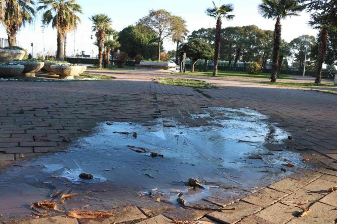 Samsun'da kar yağışının ardından gece yaşanan ayaz nedeniyle şehirdeki su birikintileri buz tuttu.