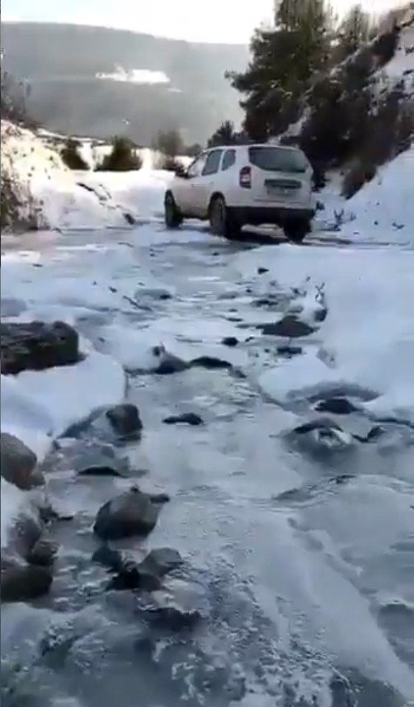 Samsun İl Sağlık Müdürlüğü tarafından Kovid-19 aşısı ulaştırmak için kar kış demeden görev yapan sağlık çalışanlarının gösteren bir görüntü paylaşıldı. Görüntüde kar ve buzlu yollarda ilerleyen mobil aşı ekibinin fedakarlığı gözler önüne seriliyor.