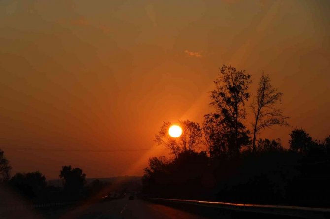 Günün ilk saatlerinde dağların arasından kendisini gösteren güneş, görsel bir şölen ile güne uyananları selamladı. Kızıl rengi ile tüm güzelliğini gözler önüne seren ve Samsun'un Bafra ilçesi ile Alaçam ilçesi arasında kalan mevkide dağların arasından doğan güneş, doyumsuz bir manzara oluşturdu. Güneşin dağların arasından kendini göstermesiyle etrafı aydınlatan günün ilk ışıkları, doğanın tüm güzelliğini gözler önüne serdi.