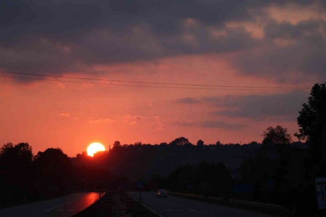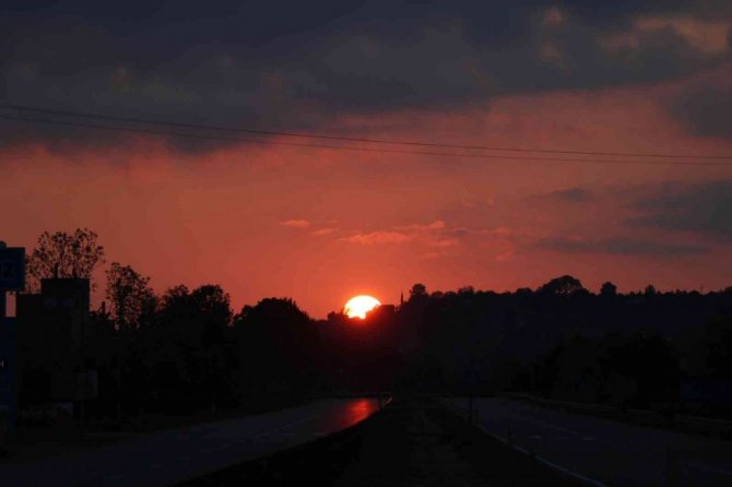 Güneşin doğuşunu izlemek isteyen bazı vatandaşlar, araçlarını yol kenarına çekerek, bu eşsiz doğa manzarasının tadını çıkardı.