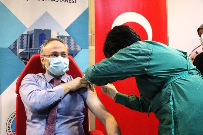 Samsun'da ilk Covid-19 aşıları sağlık çalışanları yapılmaya başladı. Samsun'da ilk aşıyı olan İl Sağlık Müdürü Dr. Öğr.