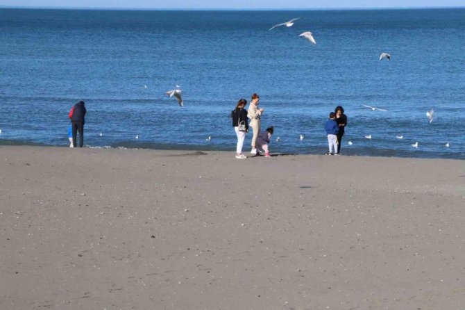 Samsun’da sıcaklık 20 dereceyi görünce sahiller şenlendi