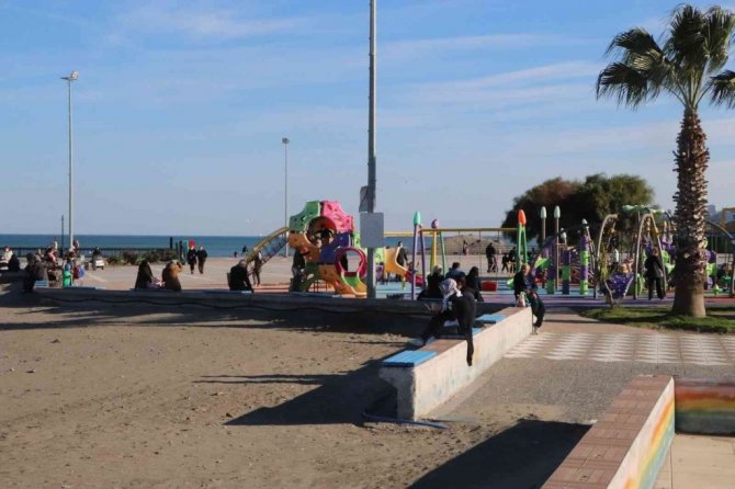 Samsun'da kış ortasında hava sıcaklığının 20 dereceyi görmesini fırsat bilen vatandaşlar sahilleri şenlendirdi.
