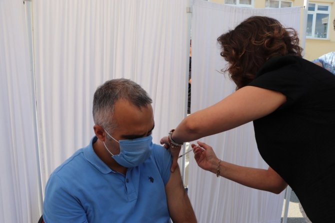 Korona aşısını okul bahçesinde olan eğitimci Melek Çelebi, "Aşının anlamı çok kıymetli ve önemli. Bu bağlamda kampanyaya destek olmak adına 3. aşımı olmak üzere buraya geldim. Bu süreçte 90 yaşındaki kayınvalidem ve kayınpederim de korona oldu. Hastane süreci olmadan bunu atlattılar. Çünkü aşılarını olmuşlardı. 6 Eylül'de inşallah eğitim ve öğretimimizi açmak için heyecanlıyız. Değerli velilerimiz buna çok kıymet versinler" diye konuştu.