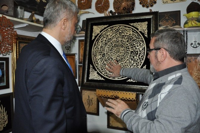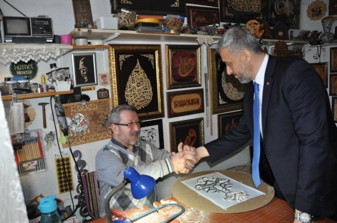 Ziyarette konuşan Biçer“ 40 yıl önce tanıştığı Naht sanatını yaşatmaya çalışan, ilçemizin ve bölgemizin tek Naht sanatçısı Mehmet Emin hocamızın eserlerini hayranlıkla seyrettik, onlara dokunduk. Naht sanatını son temsilcilerinden olan hocamıza destek sözü verdik. Sosyal Belediyecilik anlayışıyla, Anadolu’da yok olmaya yüz tutmuş Naht sanatının tanıtılması ve yaşatılması için elimizden ne gelirse yapacağız. Büyük bir sabır isteyen Kelamullah’ın ağaç ile buluştuğu Naht sanatını yaşatan hocamızın talaşlı ellerinden öpüyoruz. Sanata ve sanatçıya önem vereceğiz” dedi.
