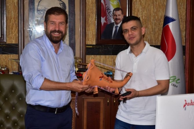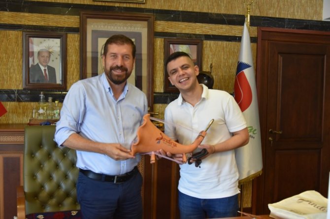 Sındırgı'nın eşsiz doğasına ve güzelliklerine hayran kalan Sonses Sındırgı belediye başkanı Ekrem Yavaş'ı da makamında ziyaret etti. Başkan Yavaş da günün anısına Sonses'e toprak gramafon hediye etti.