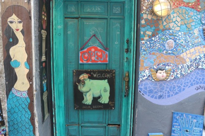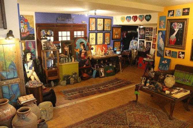 Marmaris’te yaşayan sanatçı Alexia Bahar Yılmaz ve Güçlü Kadir Yılmaz çifti harabe olarak aldıkları evi sanat galerisine çevirdiler. Kale bölgesinde bulunan harabe evi alan çift, evi düzenledikten sonra yaptıkları sanat eserleri ürünleri evde sergilemeye başladılar. Resim, heykel, seramik, taştan, kalastan ve kumaştan yaptıkları ürünler özellikle turistler tarafından büyük ilgi görüyor. Eş olarak birbirlerine çok destek olduklarını belirten Alexia Bahar Yılmaz, “Kale bölgesinde oturmak istiyorduk. Bir ev almak için gezmeye başladık. Yaklaşık iki ay bütün sokakları gezdik. Sonrasında konumu çok güzel olan ama harabe olan bir yer bulduk. Yapıldığından beri kimse oturmamış. İçinde kimse oturmadığı için yapılan şeyler zamanla çürümüş ve dökülmüştü. Sonra burayı aldık. Çok kısa bir sürede yoğun bir çalışmayla toparladık. Karı koca çalışarak elimizden geldiğince dışına mozaikler yaptık, boyadık. Burayı güzel bir yere çevirdik” dedi.