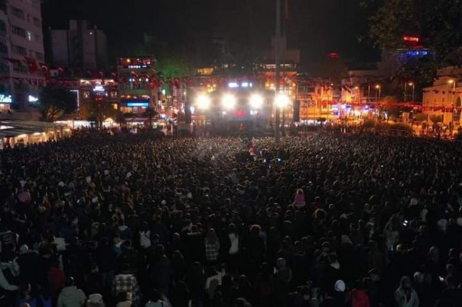 Şarkıcı Emre Aydın seslendirdiği şarkılarla meydanda toplanan binlerce kişiyi coşturdu.