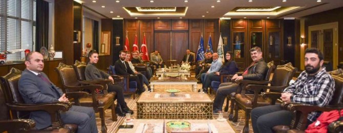 Güney Marmara Tiyatro Kooperatifi Başkanı Mustafa Yıldırım ve "Birnefestival" programına katılarak sanatlarını icra etme imkanı bulan sanatçılar, teşekkür etmek hedefiyle Bursa Büyükşehir Belediye Başkanı Alinur Aktaş'ı ziyaret etti. Salgının bir çok sektörü etkilediğini ancak konser ve sahne etkinliklerinin adeta durması sebebiyle yerel sanatçıların ekonomik dar boğaza girdiğini hatırlatan Güney Marmara Tiyatro Kooperatifi Başkanı Mustafa Yıldırım, "Böyle bir süreçte Bursa Büyükşehir Belediyesi imdadımıza yetişti. O sıkıntılı süreçte sanatçı arkadaşlarımız sanatlarını icra edip, rahat bir nefes aldı. Sanata ve sanatçıya sağladıkları destekler sebebiyle Büyükşehir Belediye Başkanı Alinur Aktaş'a projeye katılan tüm sanatçılar adına teşekkür ediyorum" dedi.