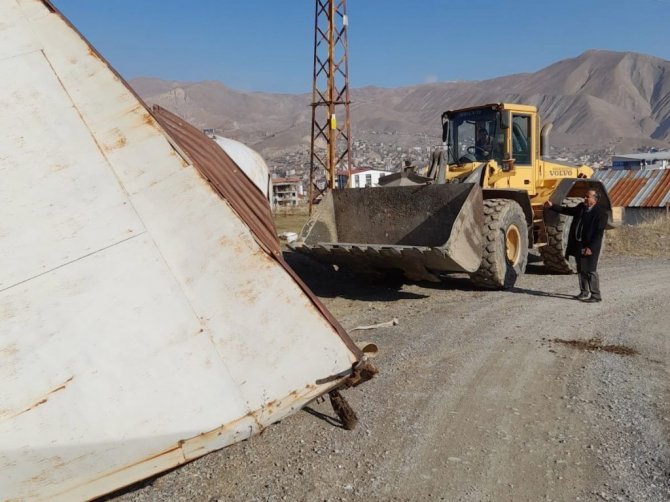 Hakkari Belediyesi ekipleri tarafından sanayi sitesinde çevre kirliliğine neden olan barakalar kaldırıldı.