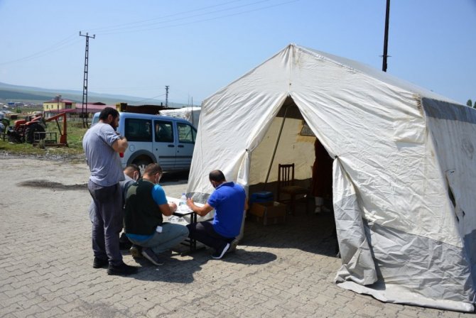 Ardahan'da sanayi çalışanlarının Covid-19 aşısı olabilmeleri için Sağlık Müdürlüğü tarafından aşı çadırı kuruldu.