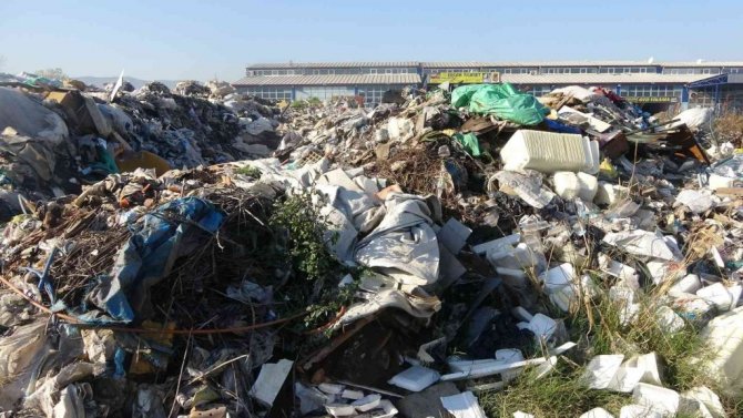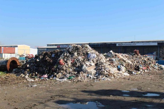 Sanayide aylardır toplanmayan çöpler, adeta dağ oluşturdu