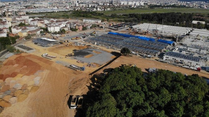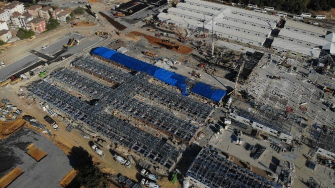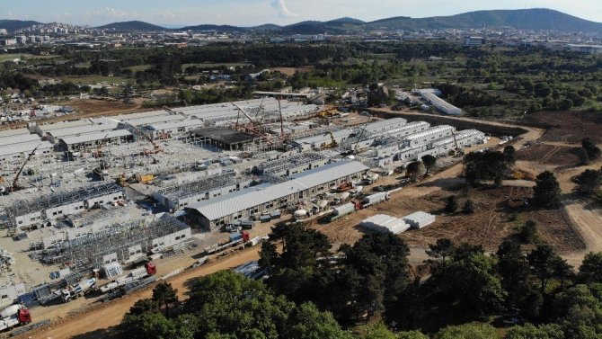 Sancaktepe’de duvar ve çatıları yerleştirilmeye başlanan pandemi hastanesi havadan görüntülendi